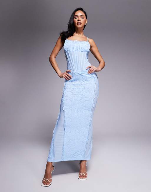 Murci – Exklusiv – Camisole-Maxikleid in Babyblau mit Spitzen-Korsett