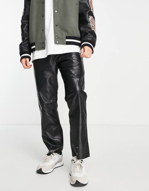 Muubaa – Hose aus Leder in Streifen mit Kordelzug und Seitenstreifen in Schwarz