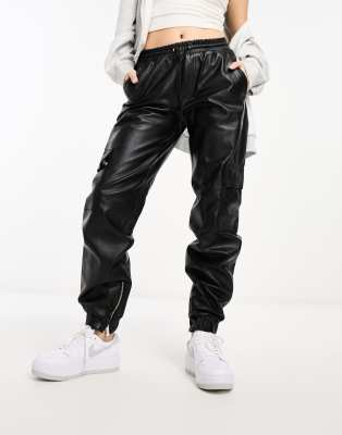 Muubaa – Jogginghose aus schwarzem Leder mit Utility-Tasche