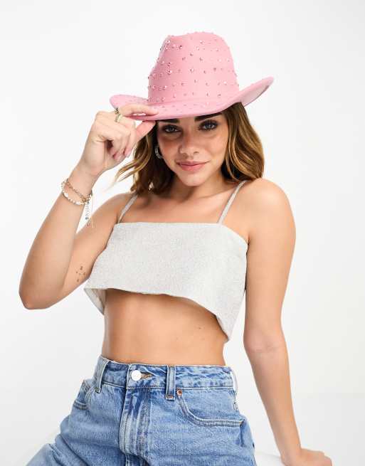 My Accessories – Cowboy-Hut in Rosa mit schimmerndem Strass