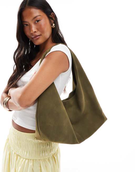My Accessories – Lässige eckige Schultertasche aus Wildlederimitat in Olivgrün
