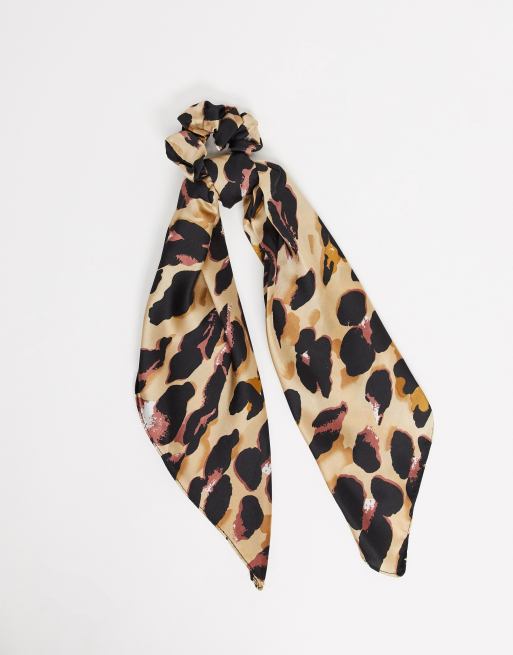 My Accessories London – Mehrzweck-Bandana und Haargummi aus Satin mit Leopardenmuster