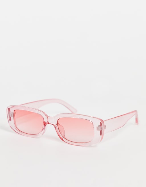 My Accessories London – Rechteckige Sonnenbrille im Stil der 90er komplett in transparentem Rosa