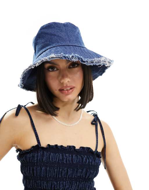 My Accessories – Oversize-Anglerhut aus Denim in Blau