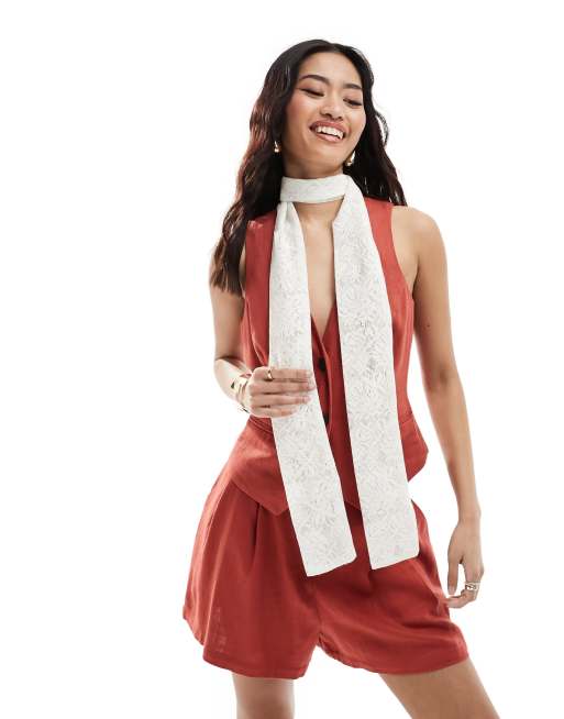 My Accessories – Schmaler Spitzenschal in Weiß