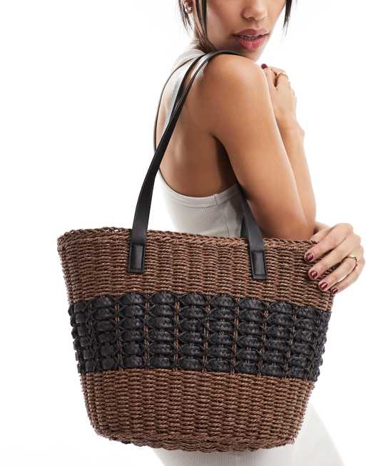 My Accessories – Zweifarbige Tragetasche aus Stroh in Braun und Schwarz