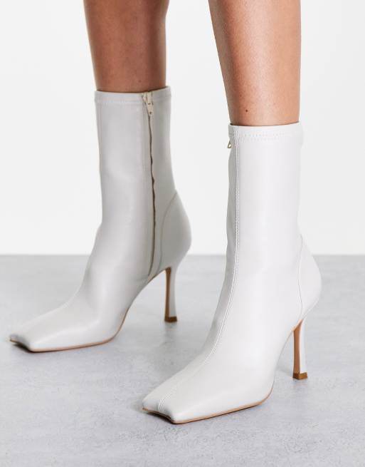 NA-KD – Absatzstiefel mit eckiger Zehenpartie in Weiß