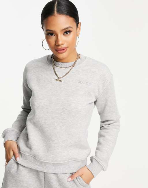 NA-KD – Baumwoll-Sweatshirt in meliertem Grau mit Logoprint - GREY