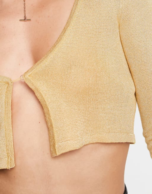 NA-KD – Glitzerndes Set aus kurzer Strickjacke und weit geschnittener Hose
