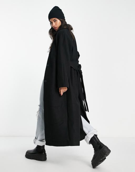 NA-KD – Maxi-Mantel in Schwarz mit Bindegürtel
