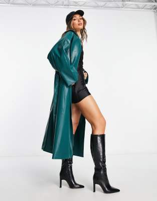 NA-KD – Oversize-Trenchcoat aus Kunstleder in Grün