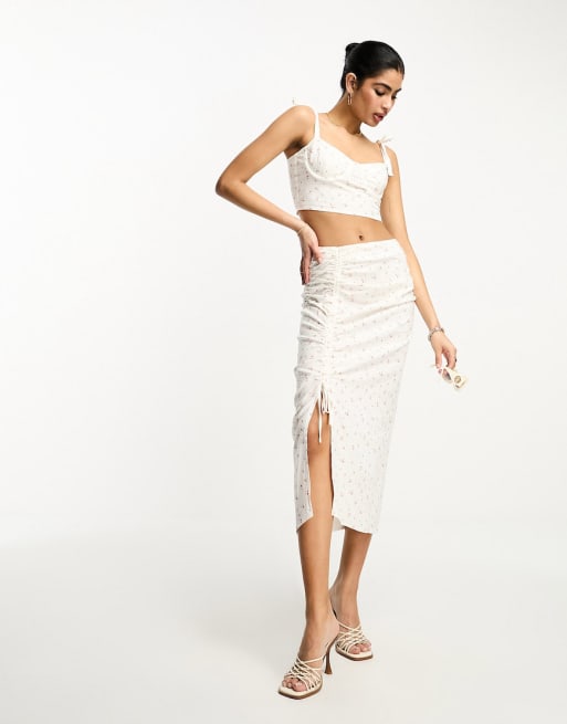 NA-KD – Set aus kurzem Oberteil und gerafftem Midirock mit Schlitz