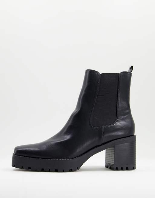 NA-KD – Stiefel mit Profilsohle und eckiger Zehenpartie in Schwarz