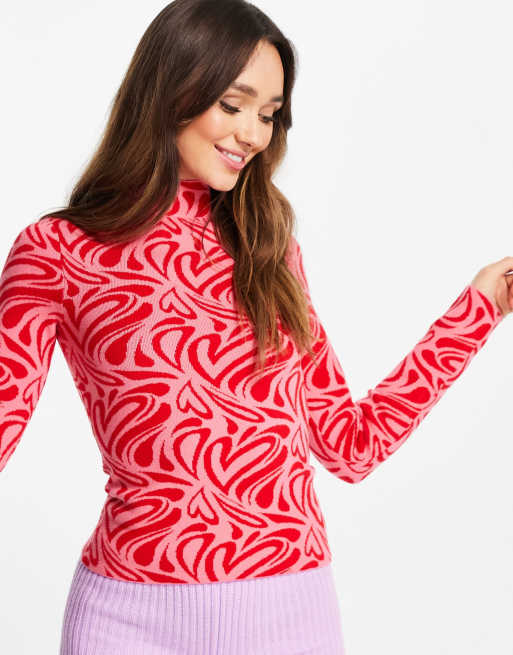 NA-KD – Strickoberteil in Rot mit Herzmuster und Polokragen