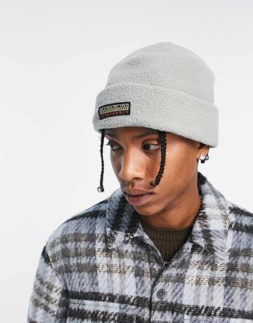 Napapijri – F-Rock – Strickmütze in Hellgrau mit Box-Logo