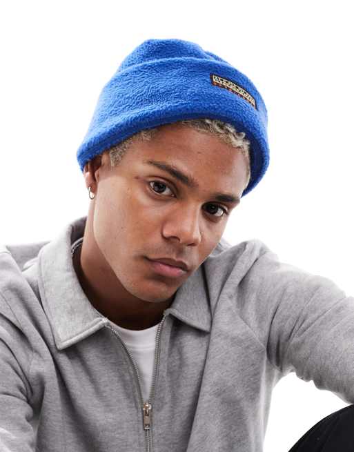 Napapijri – Rock – Fleece-Strickmütze in Blau mit Logo-Aufnäher