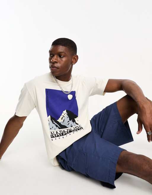Napapijri – Telemark – T-Shirt in gebrochenem Weiß mit Brust-Print