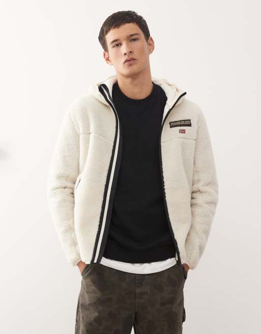 Napapijri – Tynik – Kapuzenjacke aus Fleece in Beige