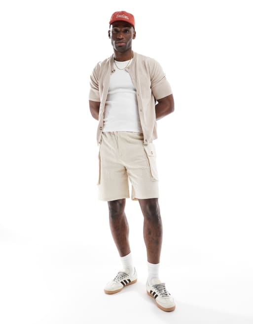 Native Youth – Cargo-Shorts aus Leinen in Cremeweiß mit Oversize-Schnitt