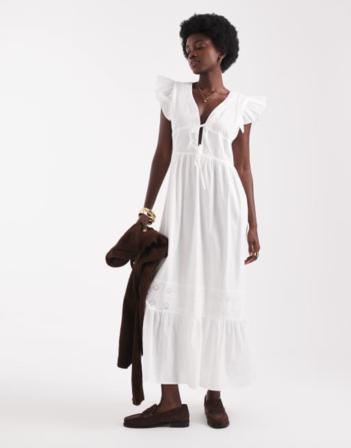 Native Youth – Fließendes Midaxi-Kleid in Weiß mit Rüschen