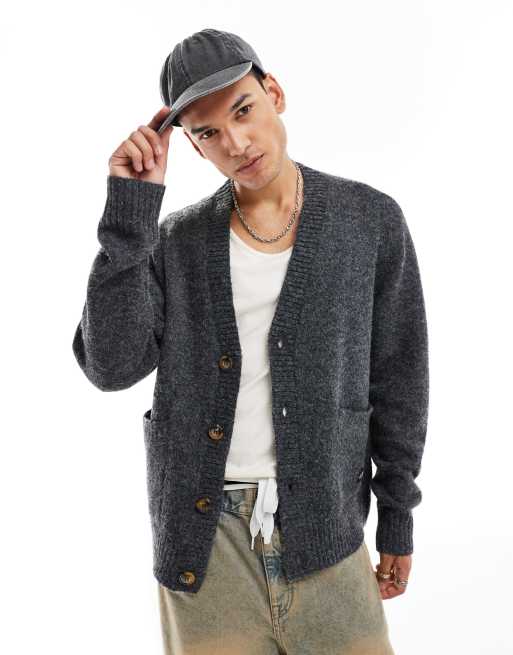 Native Youth – Locker geschnittene Strickjacke in meliertem Anthrazit