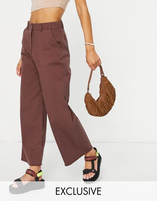 Native Youth – Lockere, ausgefranste Jeans mit weitem Bein in Schokoladenbraun, Kombiteil