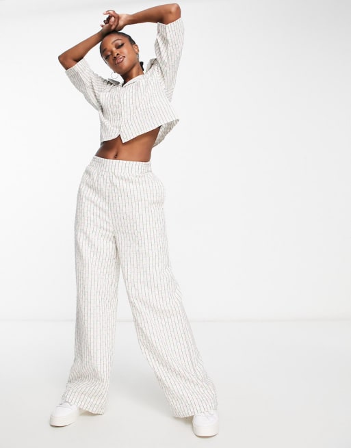 Native Youth – Strukturiertes, mehrfarbiges Set aus Baumwolle mit kurzer Hemdbluse und weit geschnittener Hose