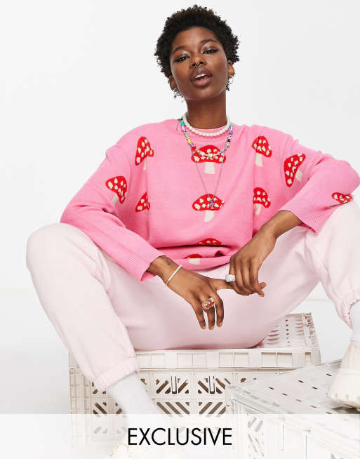 Native Youth – Super-Oversize-Pullover aus Strick mit Pilzmotiven