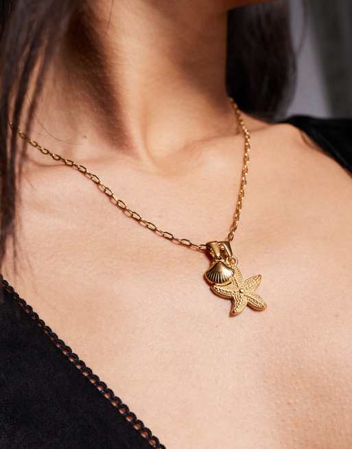 Neck On The Line – Vergoldete, verzierte Halskette mit Seestern- und Muschelanhänger
