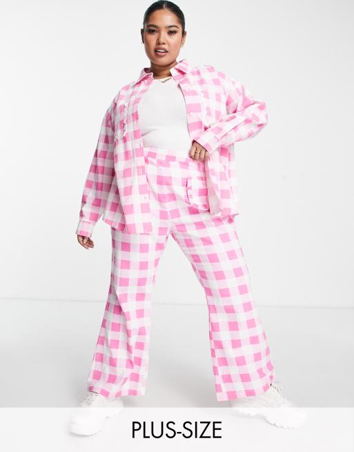 Neon Rose Plus – Karierte Schlaghose mit Rüschenrand an den Taschen, Kombiteil