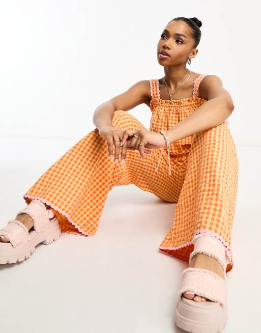 Neon Rose – Jumpsuit in Orange mit Vichy-Karos und Schleifendetail