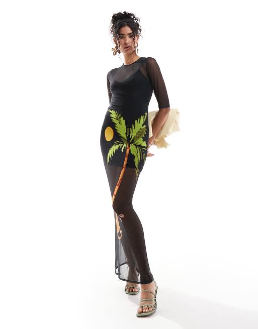Never Fully Dressed – Izzy – Bedrucktes Maxikleid aus Netzstoff in Schwarz