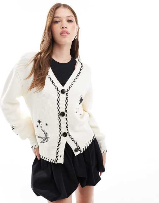 Never Fully Dressed – Mystical – Strickjacke in Cremeweiß mit Tattoo-Design