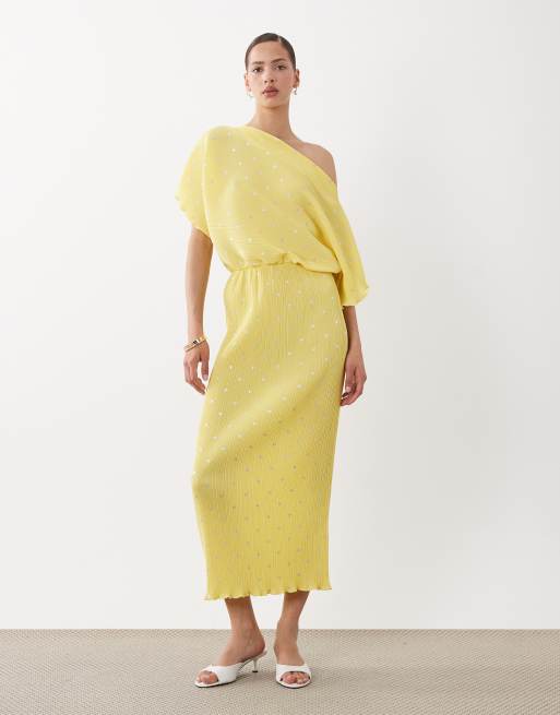 Never Fully Dressed – Tilly – Schulterfreies, plissiertes Maxikleid in Zitronengelb