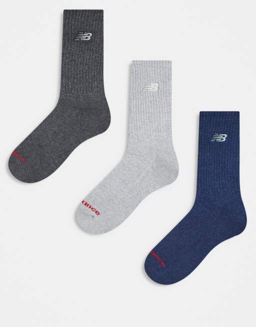 New Balance – 3er-Pack wadenhohe Socken in Grau und Marineblau mit Logo-Stickerei