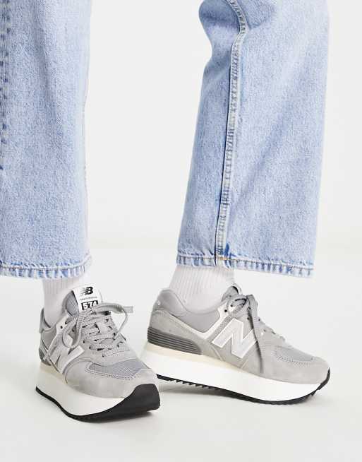 New Balance – 574+ – Sneaker in Grau mit dicker Plateausohle