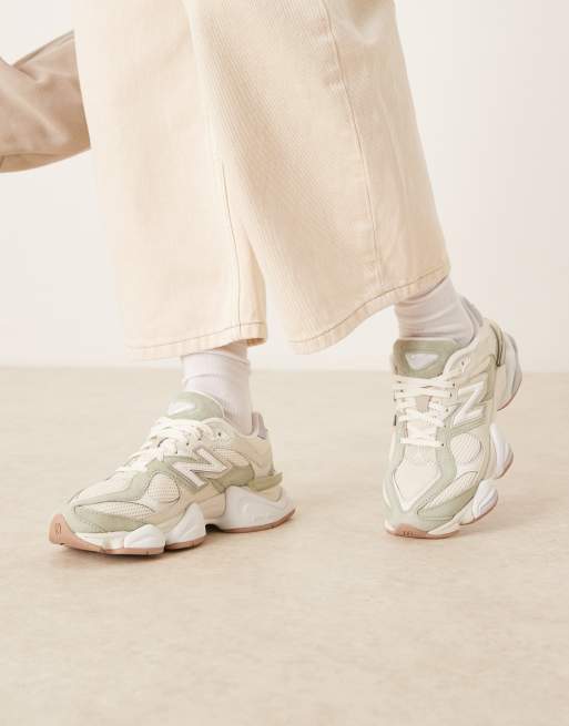 New Balance – 9060 – Sneaker in Wollweiß und Grün