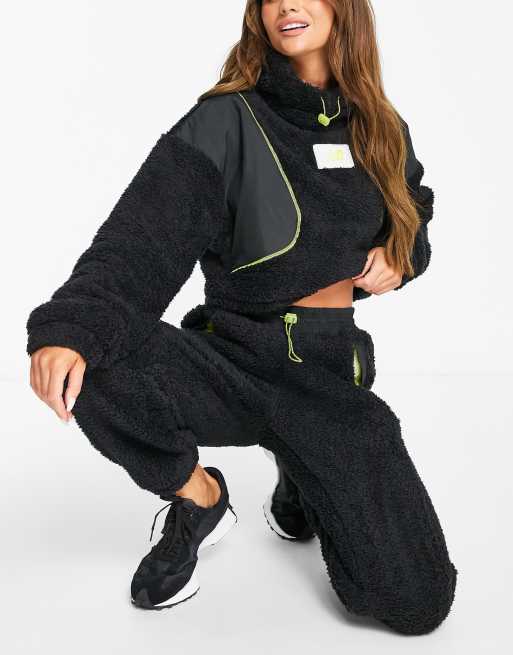 New Balance – Achiever – Kapuzenpullover aus Teddyfell in Schwarz mit kurzem Schnitt, exklusiv bei ASOS