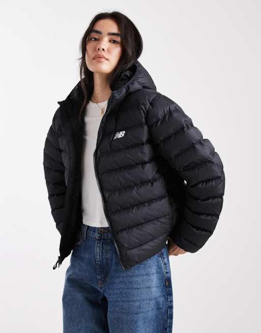 New Balance – Sport Essentials – Pufferjacke in Schwarz mit Kapuze