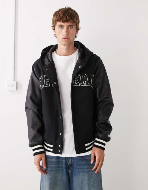 New Era – College-Bomberjacke in Schwarz mit Kapuze