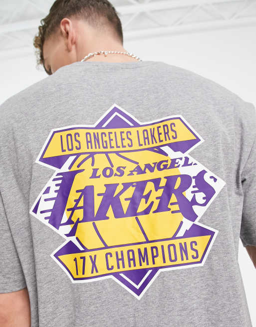 New Era – LA Lakers – T-Shirt in Grau mit Champions-Print am Rücken