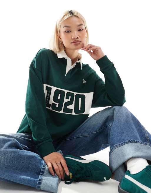 New Era – Rugby-Oberteil in Grün mit Motiv und Oversize-Schnitt