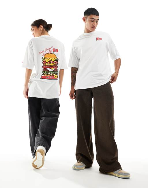 New Era – Unisex-T-Shirt in Weiß mit Hamburger-Grafik