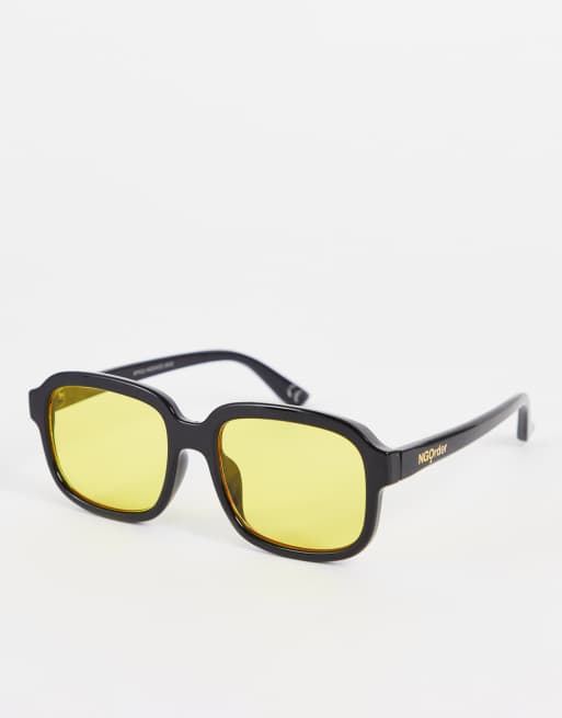 New Girl Order – Oversize-Sonnenbrille mit eckigen Gläsern im Stil der 70er in Schwarz mit getönten Gläsern in Gelb