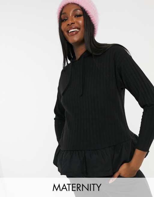New Look Maternity – Gestrickter Kapuzenpullover in Schwarz mit Baumwollsaum