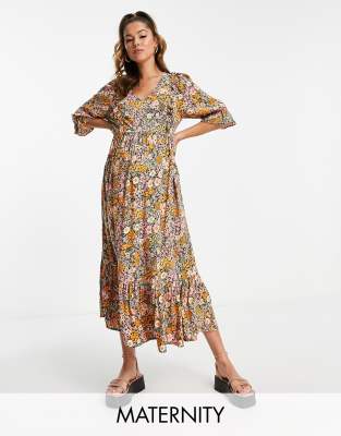 New Look Maternity – Midikleid in Orange geblümt mit Stillfunktion