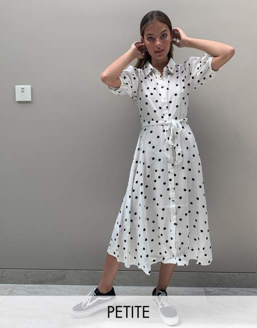 New Look Petite – Weißes Mid-Hemdkleid mit Puffärmeln und Tupfenmuster