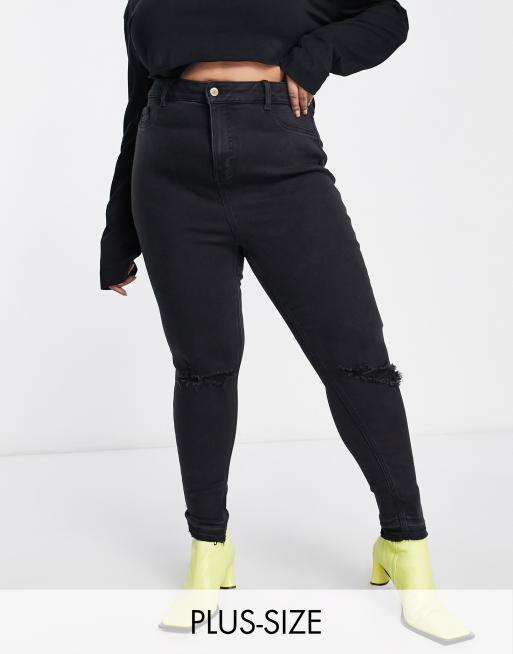 New Look Curve – Enge Jeans in Schwarz mit Knierissen