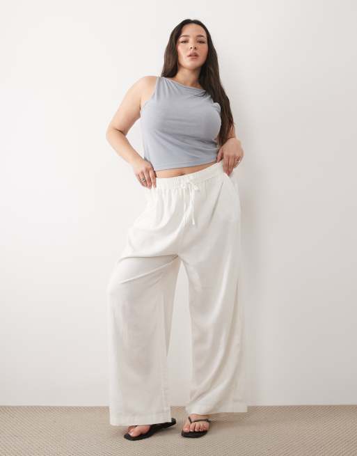 New Look Curve – Hose aus Leinenmix in Weiß mit weitem Bein