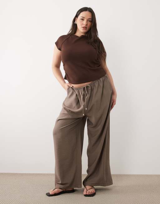 New Look Curve – Hose aus Webstoff in Beige mit weitem Bein